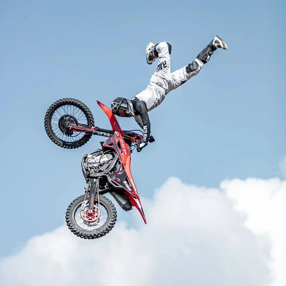 DIRT BIKES, SNOWMOBILES, QUAD BIKES, MINI BIKES, BMX, TRIALS – IF IT’S GOT WHEELS, WE’RE JUMPING IT! EVEN DEATH DEFYING STUNTS LIKE THE GLOBE OF DEATH!